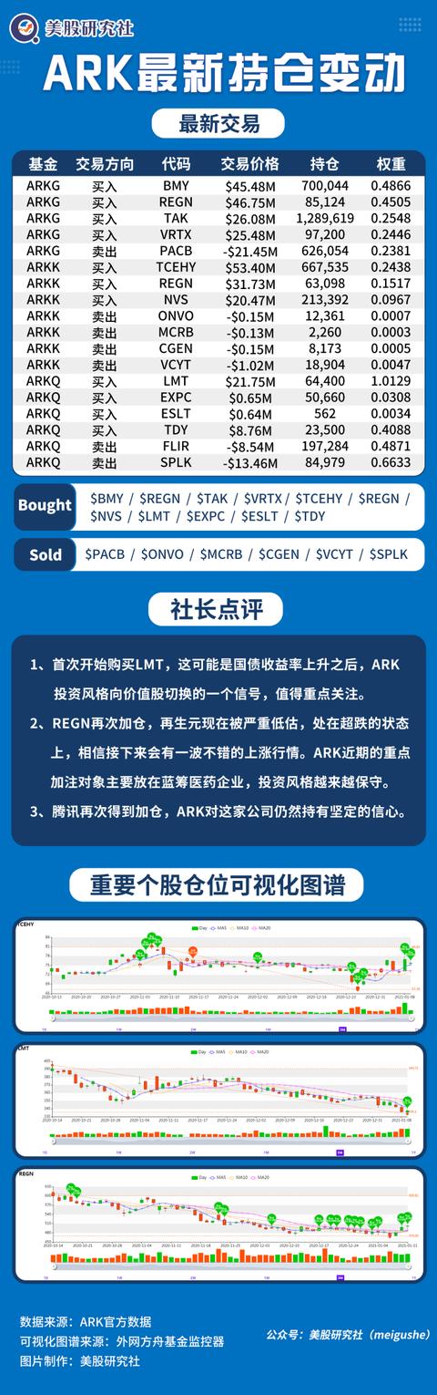 1、首次开始购买LMT,这可能是国债收益率上升之后,ARK投资风格向价值股切换的一个信号,值得重点关注。