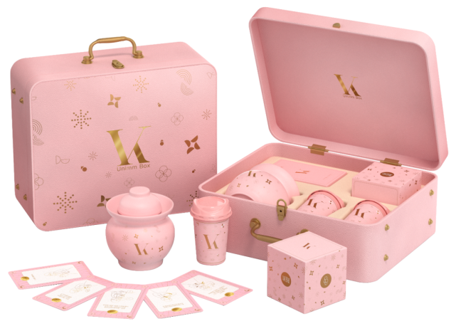 据悉,为了满足目标群体对时尚潮流的追求,【酸菜奶茶礼盒】在视觉上直接对标奢侈品,精美的外观设计,粉色镶金酸菜坛,采用洋金工艺手工制作,尽显高端品味。礼盒中味可滋冷萃奶茶VK系列产品的包装颜值同样在线,独特新潮粉专属设计,极具时尚潮流特性。