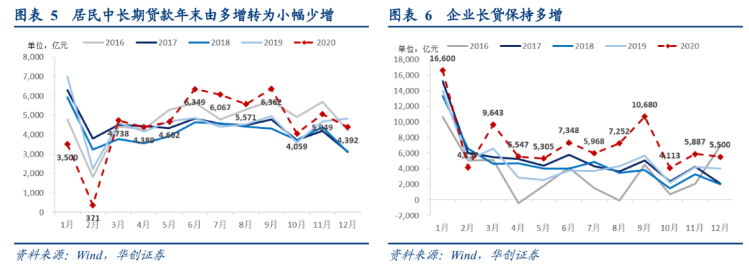 12月新增人民币贷款1.26万亿,同比多增1200亿,环比少增1700亿,人民币贷款余额增速持平于12.8%。结构上,企业长贷新增占比达43.7%,同比亦保持多增,信贷结构改善趋势并未改变,企业强劲的融资需求也并未大转向。居民长贷虽然转为小幅少增,但可能与年底部分银行因额度不足原因,暂停按揭贷款投放有关,还需观察。信贷反映的私人部门融资需求总体依然活跃。