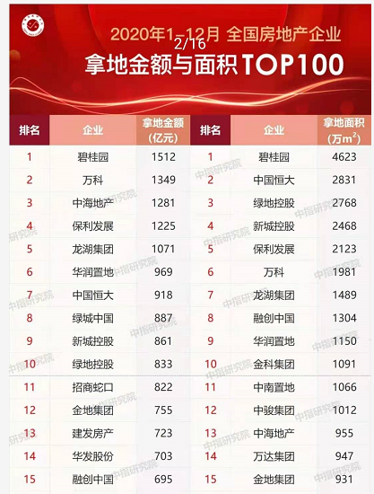 相较于2019年的数据,融创中国全口径拿地金额1541亿元,新增土储5066万平米,分别位列行业第3和第2;