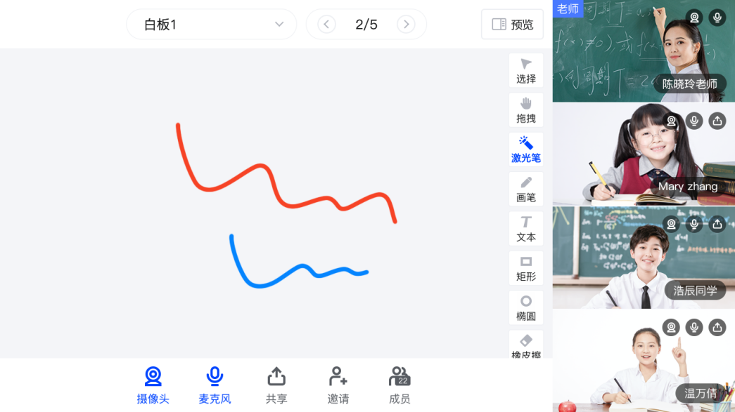 随着在线教育应用场景的普及,适用于线上的虚拟白板开始出现,但一开始的白板工具只具备板书功能,无法胜任互动性强的在线课堂场景。近几年,随着RTC技术的发展,强互动功能的在线白板工具开始出现,师生可在电脑、平板、手机等设备上直接进行互动操作,极大的拓宽了在线教育的适用场景。