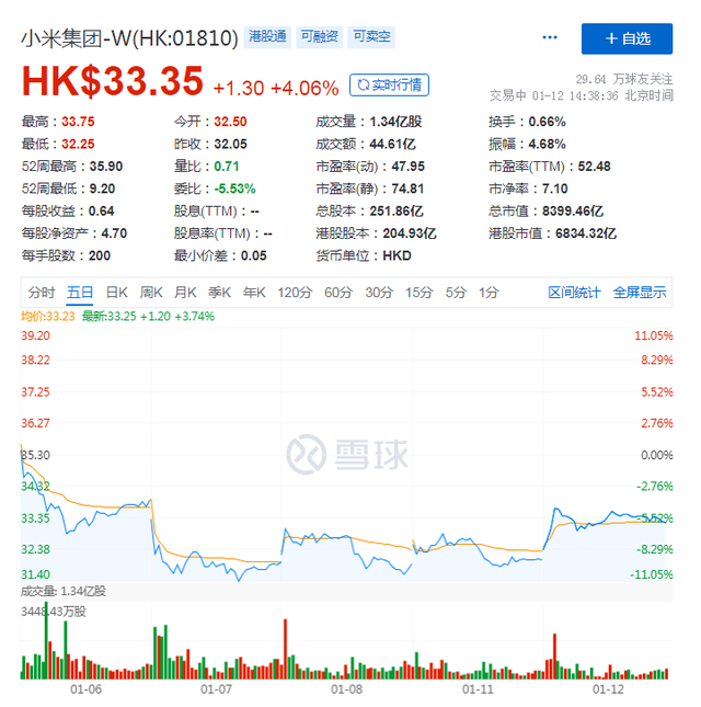 从资本市场的态度来看,颇为看好。1月11日港股收盘报收0.31%;次日,股价一度涨近5%;截止目前,市值达8274亿港元。