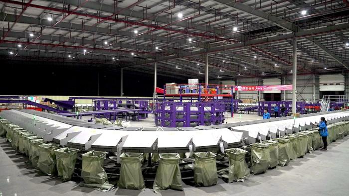 在分拨中心,记者看到,多个保税仓的包裹,被源源不断送入分拨中心,由摄像头智能识别包裹的快递公司和地址,再弹入到指定隔口。在隔口处,圆通公司去往中山的包裹被自动集纳在一起。在另一个隔口,韵达公司去往汕头的包裹也被自动集纳在一起。集包中心内超过400个隔口,高峰时期每日可让超过40万包裹按目的地分门别类,便于后续配送。广州南沙海关跨境电商监管科科长王中权告诉21世纪经济报道记者,目前一般不会满载运行,最高一小时可以处理1.8万件。