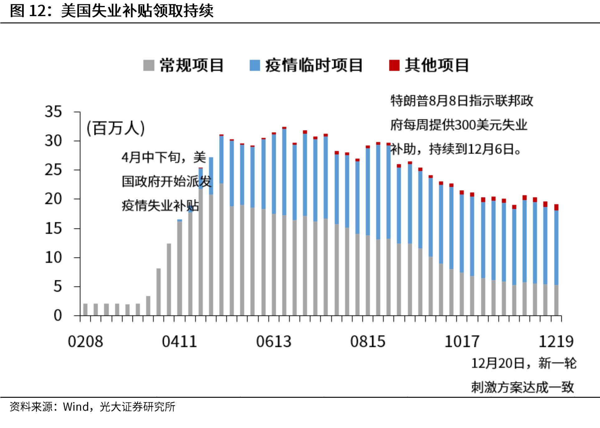 第二, 新一轮9000亿美元刺激法案重点支撑2021年一季度美国消费。