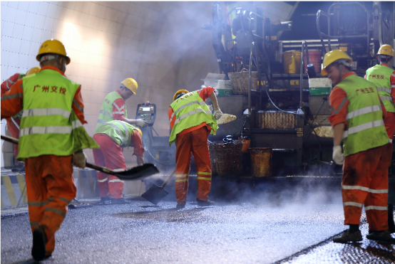 广州交投成功研发适用于大交通量高速公路深层病害维修的地聚物注浆材料,创新采用静音超薄层沥青摊铺施工加快摊铺速度