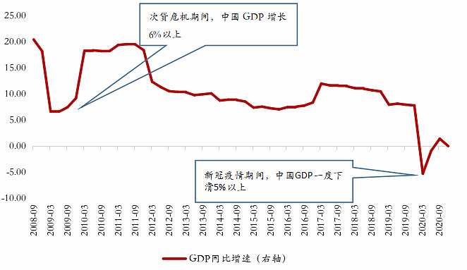 实际上,从GDP增长角度看,新冠疫情对于中国疫情的冲击超过了2008年次贷危机。根据WIND数据,次贷危机时,中国GDP增速保持了正增长,最低的时候增长6.7%,而2020年1季度,受新冠疫情影响,中国GDP同比下降5.3%。