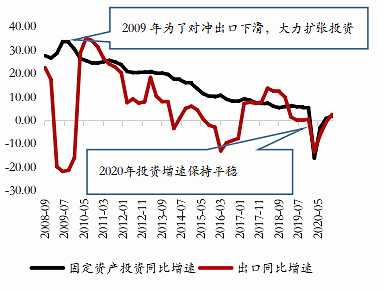 为什么面对比2008年更加恶劣的经济环境,中国做出了不同的政策选择。疫情应对得当是重要原因,但背后的更重要原因是过去十多年,中国的经济结构发生了重大的变化。2008年,外需出口和内需消费各占半壁江山,当次贷危机爆发,出口断崖式下跌,中国只能通过大规模基建刺激来拉动经济。但之后造成了比较严重的产能过剩。而2020年,内需消费占GDP的比重远远超过出口,海外经济波动对于中国影响下降,另一方面,内需消费已经成为国内产能最重要的终端市场,国内的大循环已经逐渐开启。