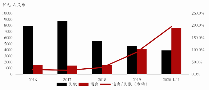 由于注册制顺利推进,叠加资本市场回暖,2020年私募股权退出大幅度上升。根据投中信息的数据统计,私募股权行业退出/认缴金额比值已经创出5年以来新高。这意味着行业进退格局持续向好,有望迎来新一轮景气周期。