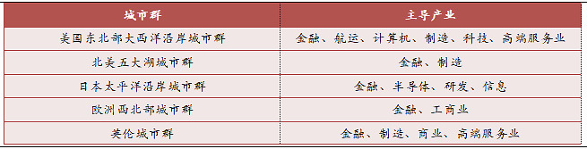 这些城市群主要以金融、先进制造、高端服务为主导产业和核心竞争力,产业结构优势明显。处于不同产业层级的城市都能充分利用其自身特点并发挥优势,与中心城市形成合作和互补的发展模式,最终形成一个在产业发展方面多样协同的城市群。