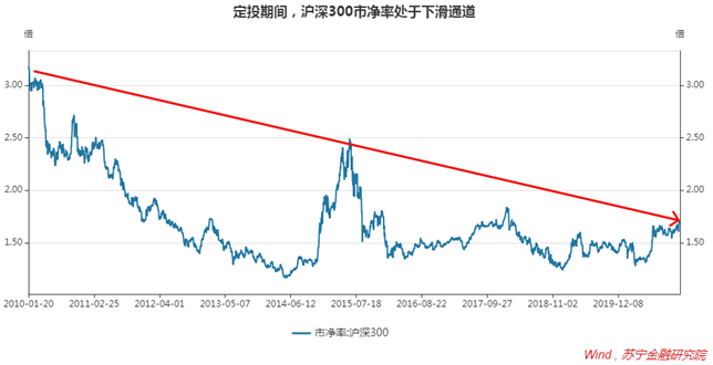 需要特别指出的是,上述定投期间并非精挑细选的结果。股票投资赚两部分钱,估值的钱+盈利的钱。上述定投期间,沪深300市净率从3.17倍降至1.71倍,年化12%的投资成绩,几乎全靠盈利的驱动。这也说明,在A股赚盈利的钱足以提供一个不错的收益率。