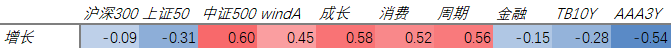 表4:2013年6月-2014年2月股债收益率和增长因子的相关性 |