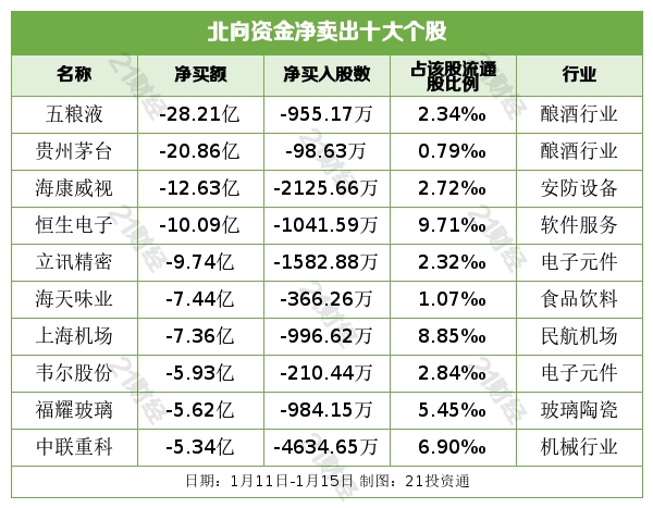 北向资金净卖出五粮液(000858.SZ)、贵州茅台(600519.SH)、海康威视(002415.SZ)、恒生电子(600570.SH)、立讯精密(002475.SZ)居前。