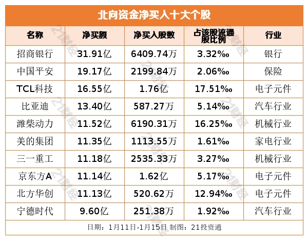个股方面,北向资金净买入招商银行(600036.SH)、中国平安(601318.SH)、TCL科技(000100.SZ)、比亚迪(002594.SZ)、潍柴动力(000338.SZ)居前。