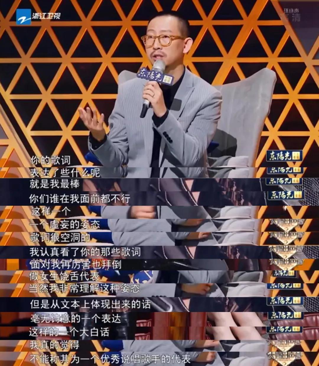当时,丁太升老师用诗歌的拆解方式认为功夫胖的歌词空洞。而在说唱之外,流行乐、摇滚乐也屡遭其“毒手”,说张杰的演唱土、说方文山歌词空洞、说吴青峰的词写得不好……