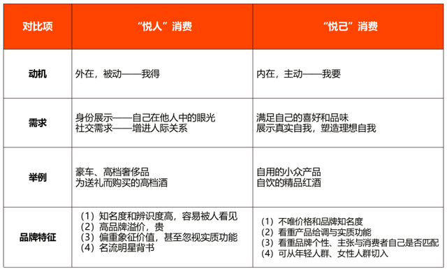 这些,都是典型的“悦人”消费,其动机更多来自外在,要么是为了提升自己在他人眼中的形象,有威望有面子,满足社会规约下的自我(如买豪车、买奢侈品);要么是为了增进与他人的社交关系,具有很强的功利性(如送礼)。
