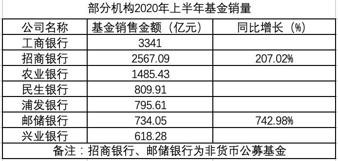 有商业银行人士反映,为了增加销量,还建议客户赎回T+0理财产品购买这只新基金。因部分上市银行三季报未披露基金代销情况,因此采用2020年半年报统计数据,可以反馈最新银行代销基金实力。
