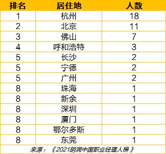 从居住地看,前50名职业经理人分布在全国13个城市。阿里系16人的占比下,杭州成为上榜人数最多的城市,共计18人,还有2人来自同花顺。北京11人位居第二,佛山以7人位列第三,其中6人来自海天味业,1人来自美的。