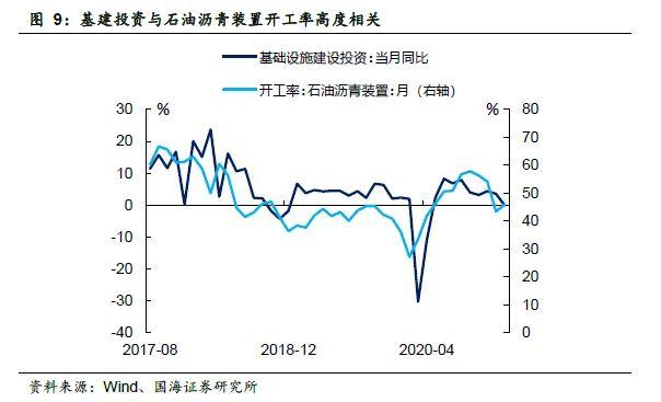 12月份基建同比增速小幅回落。由于疫情原因,2020年专项债扩容仓促,部分地区申报项目存在合规性问题。三季度以来,中央加强了对地方债务与基建项目合规性审查,制约基建投资落地,导致资金淤积在央行与城投公司资产负债表中。上述问题,2021年上半年仍将阶段性存在。从高频数据来看,石油沥青装置开工率与基建投资同比走势呈高度相关。从高频数据来看,2021年1月石油沥青装置开工率小幅回升,未来基建可能也将出现小幅反弹。
