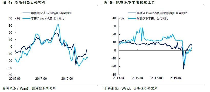 汽车消费同比增速有所回落;国际油价回升,叠加12月份天气出现极寒现象,石油类制品消费回升。12月汽车零售额同比增长6.4%,增速较上月下行5.4个百分点。而石油制品消费同比增长-3.8%,较上月增加7.2个百分点。