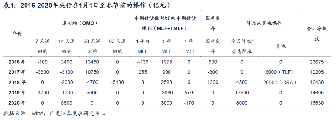 我们统计了2016-2020年春节前(1月1日至春节)央行的操作,发现每一年央行的应对都不同。