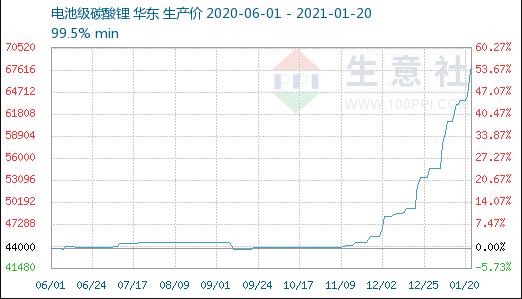 上海一家厂商的报价则显示,1月4日电碳报价为58000元/吨,最新一期报价升至69500元/吨,累计上调11500元/吨。