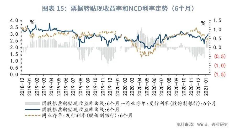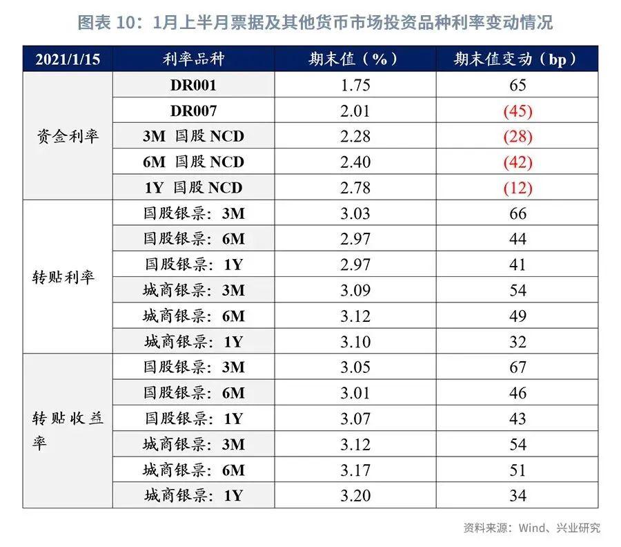正如我们在2020年12月19日的报告《两节流动性无忧,但票据利率将“抬头”》 [1] 中指出的那样,1月上半月,受银行信贷投放“开门红”效应的影响,跨元旦之后的票据利率转为上行,结束了之前和NCD利率的倒挂,而NCD利率则继续回落,票据利率再度上演“反转”行情。