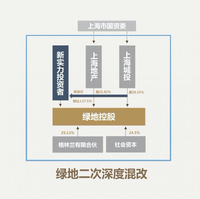 当时,绿地集团公告称,为进一步深化国资国企改革,优化国资布局结构调整, 完善公司股权结构,公司第二大股东上海地产(集团)有限公司(下称“上海地产”)及第三大股东上海城投(集团)有限公司(下称“上海城投”)拟通过公开征集受让方的方式协议转让所持有的公司部分股份,拟转让的股份比例合计不超过绿地总股本的17.50%。