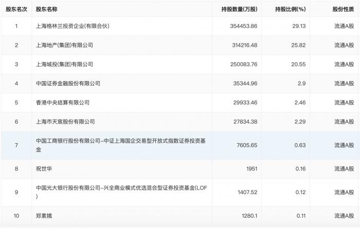 公开信息显示,截至2020年三季度末,绿地集团的前三大股东分别为:上海格林兰投资有限公司,持有35.45亿股,持股比例29.13%;上海地产,持有31.42亿股,持股比例25.82%;上海城投,持有25.01亿股,持股比例20.55%。