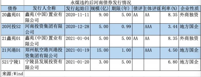 在市场人士看来,宁陵投资此次信用债券发行成功,意味着河南区域城投信用开始修复。两个多月前的11月10日,永城煤电控股集团公司未能兑付10亿“20永煤SCP003”,引起市场广泛关注。永煤违约后,在债券市场掀起轩然大波,信用风险的传导在一、二级市场持续发酵。