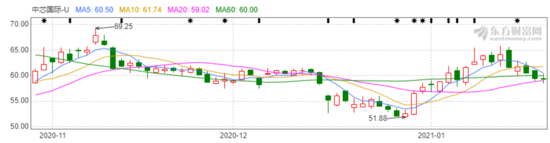 不到两个月完成上市,中芯国际的上市节奏,可谓是打破了多项科创板纪录,也开启了国内半导体产业价值重估的大门。截止1月21日午盘,中芯国际的科创板股价达到了59.88元/股,总体市值达4727.35亿元。