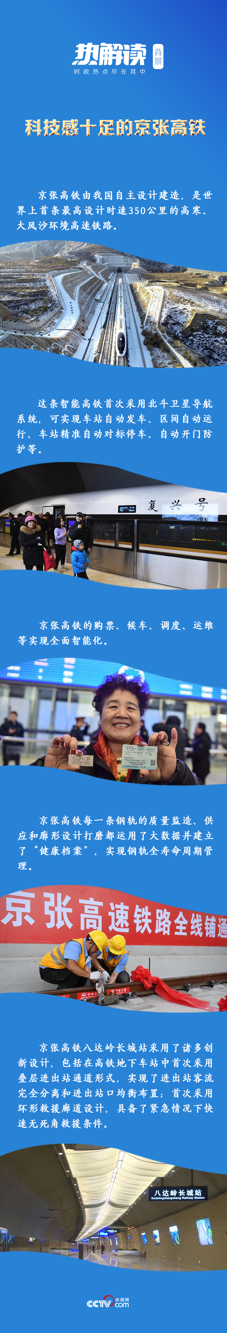 习近平总书记在对京张高铁开通运营作出的重要指示中指出,从自主设计修建零的突破到世界最先进水平,从时速35公里到350公里,京张线见证了中国铁路的发展,也见证了中国综合国力的飞跃。