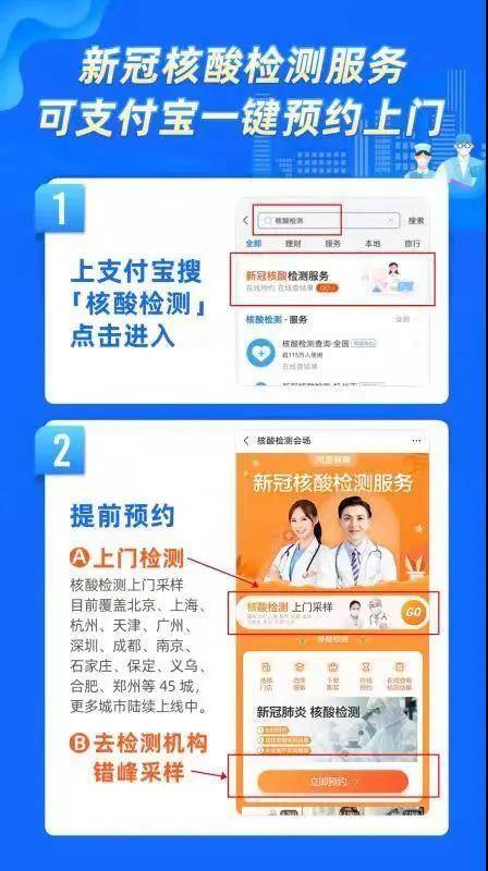 此外,支付宝“疫情服务直通车”再次上线,用户可在“新冠核酸检测服务”专区查询全国采样点位置或附近核酸检测机构位置,可进行提前预约检测,或预约上门采样。据了解,支付宝核酸检测机构预约服务已覆盖超76个城市超200家机构;上门采样核酸检测服务覆盖了广州、深圳等45个城市。