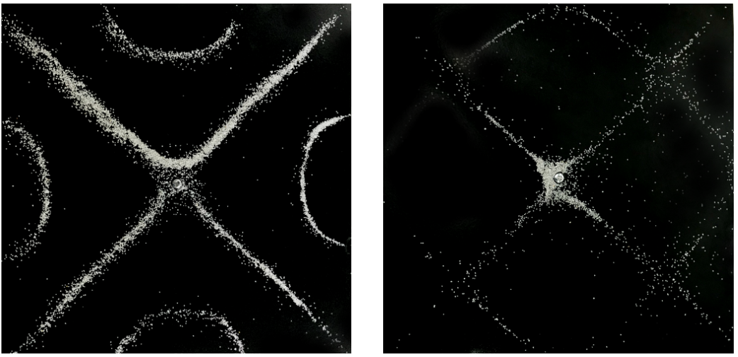 其中,比较有代表性的是对于“克拉尼图形”的应用。这种图形最早由德国物理学家克拉尼发现,其基础实现方式是将硬质粉末(细沙、米粒等)撒在薄板上,令薄板振动,粉末就会排出各种图案,并随着振动频率而改变。