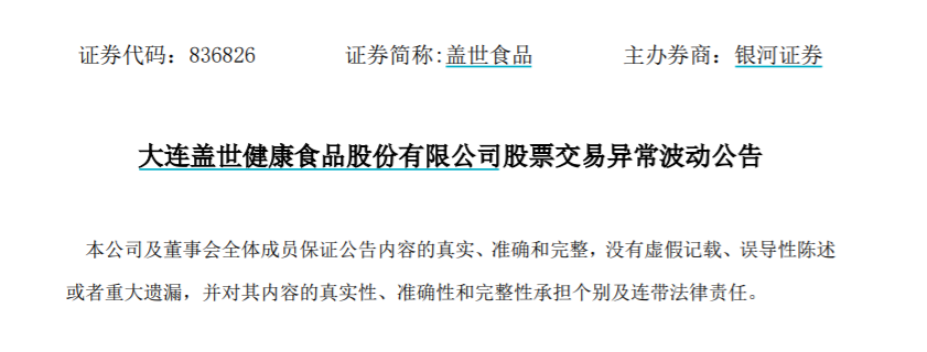 今日18时,盖世食品发布一份关于股价交易异常公告。
