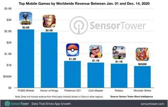 2020年,《PUBG Mobile》+《和平精英》收入超过26亿美元