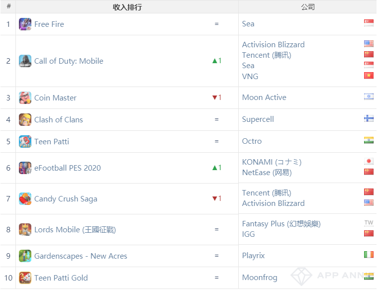 2020年12月印度iOS & Google Play游戏收入榜前10中,与中国关系匪浅的手游并不少