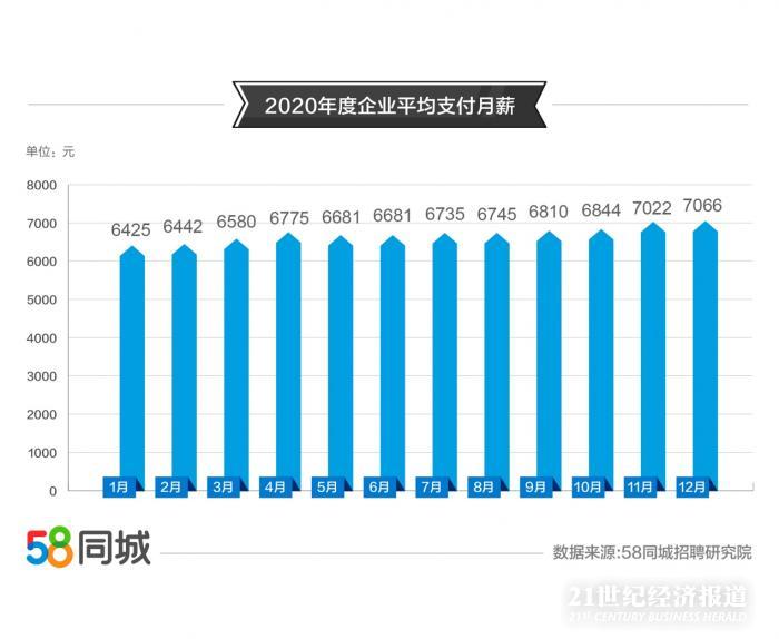 58同城招聘研究院还对企业支付月薪进行了统计,2020年企业年平均支付月薪为6734元,同比增长7.64%。尽管在2020年,各行各业受到疫情冲击,但劳动者收入水平仍有较大幅度的提高,人力资源价值的提升使求职者从劳动中分享到更多红利。