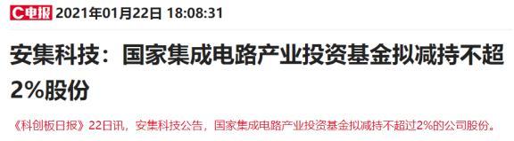 1月22日晚间,大基金宣布将减持三大半导体龙头企业晶方科技、兆易创新和安集科技。如果按最新收盘价计算,大基金顶格减持的这三只股票市值分别为5.63亿元、19.78亿元、3.69亿元,合计达29亿元。