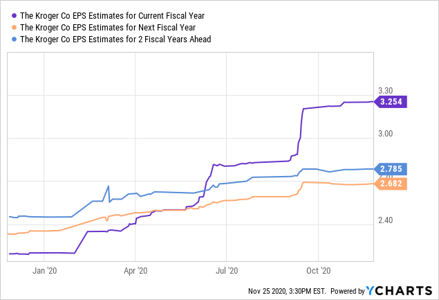 从动量投资的角度来看,回顾10年的估值研究,并考虑到超级积极的股息设置,克罗格的股票似乎是价值和收入为重点的投资组合的可靠选择。分析师认为如果不考虑股市崩盘, 除非人们不再吃饭或者去便利店买东西, 要不然该股将会持续上涨. 克罗格强劲的商业模式和盈利模式帮助他们抵挡住了疫情期间和消费者支出衰退下降, 这足以让这家公司拥有强劲的能力进入投资者的投资组合. 如果投资者正在寻找一个真正能抵御经济衰退的股票来购买,克罗格应该是投资者的研究名单中的佼佼者。