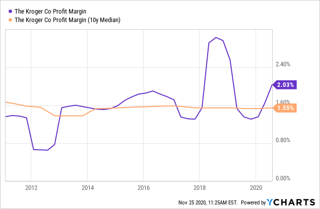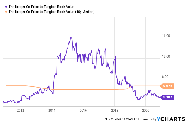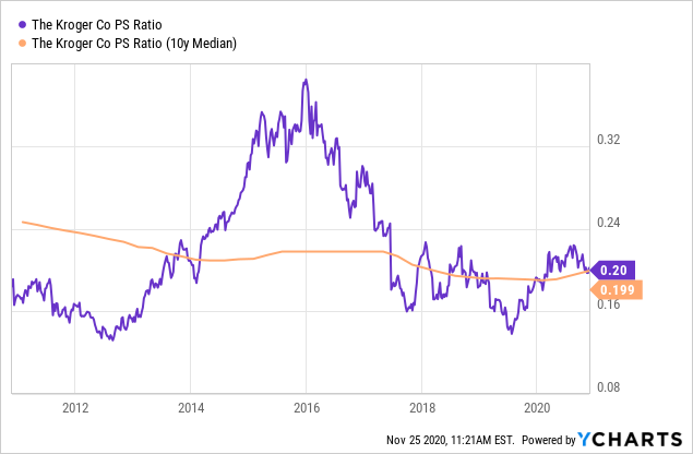 但值得一提的是, 克罗格的价格和销售的估值现在还只是在正常范围内, 0.20的价格和销售估值仅仅是2016年最高点0.39的一半