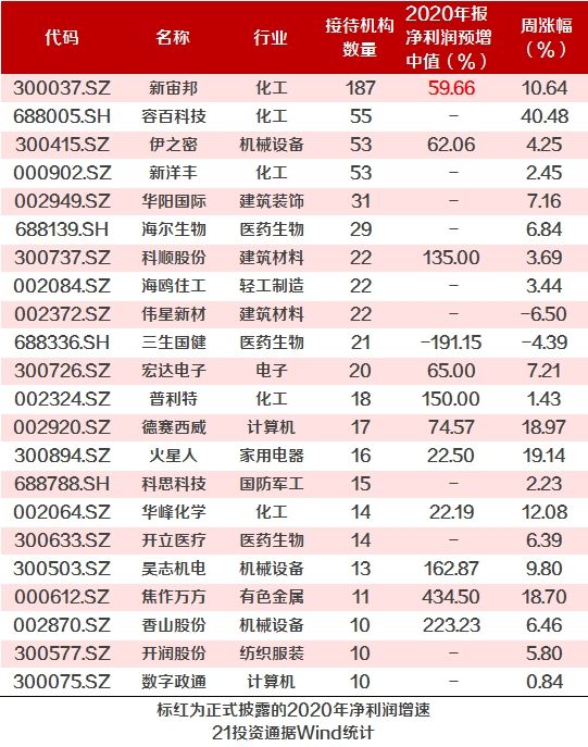 接待机构数量方面,新宙邦(300037.SZ)成为最受机构青睐的个股,获187家机构扎堆调研,是过去一周唯一一家接待超百家机构的公司。此外,容百科技(688005.SH)、伊之密(300415.SZ)、新洋丰(000902.SZ)三家公司均获超50家机构调研。