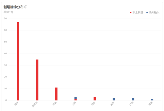 4、国内疫情数据显示,河北疫情研判,如无新的暴发点,整体疫情将进入收尾阶段。1月24日,吉林确诊人数出现快速攀升,黑龙江保持平稳,河北则继续减少。