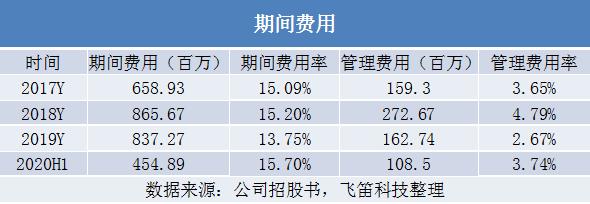 最后来看公司的费用管控能力,报告期内,公司的期间费用分别为6.59亿元、8.66亿元、8.37亿元和4.55亿元,期间费用率分别为15.09%、15.20%、13.75%和15.70%,公司期间费用率在2019年较低,主要是当年公司利润情况较上年回落,与 2018 年相比无股份支付事项,此外,公司的年度绩效目标未能全部达成,因此管理人员年终绩效奖励相应减少,使得当年管理费用率下降所致。