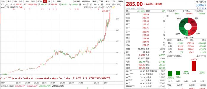 作为2020年最牛A股,英科医疗去年股价年涨幅达1428.06%,去年1月初股价还不到20元,截至22日收盘,今年仅15个交易日股价已上涨近70%至284.36元/股。