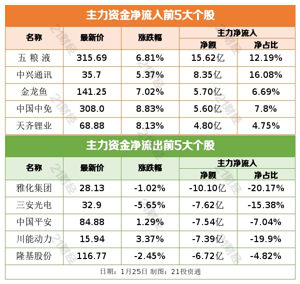 个股方面,北向资金净买入通威股份(600438.SH)、阳光电源(300274.SZ)、中兴通讯(000063.SZ)、贵州茅台(600519.SH)、隆基股份(601012.SH)居前。