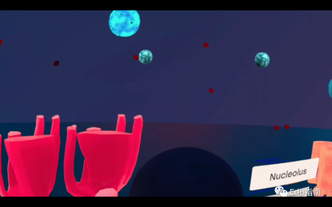 图示为:通过Inspirit平台的VR实验室示例,进行生物教学,展示真核细胞间期核中最显著的结构