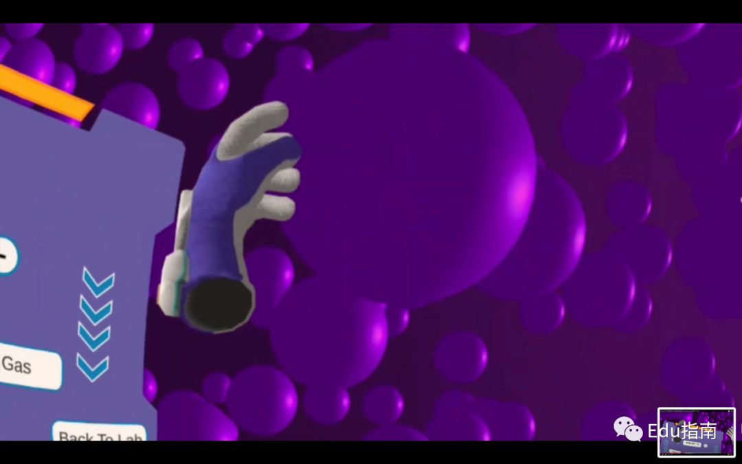 图示为:通过Inspirit平台的VR实验室示例,进行化学教学,气体等呈现