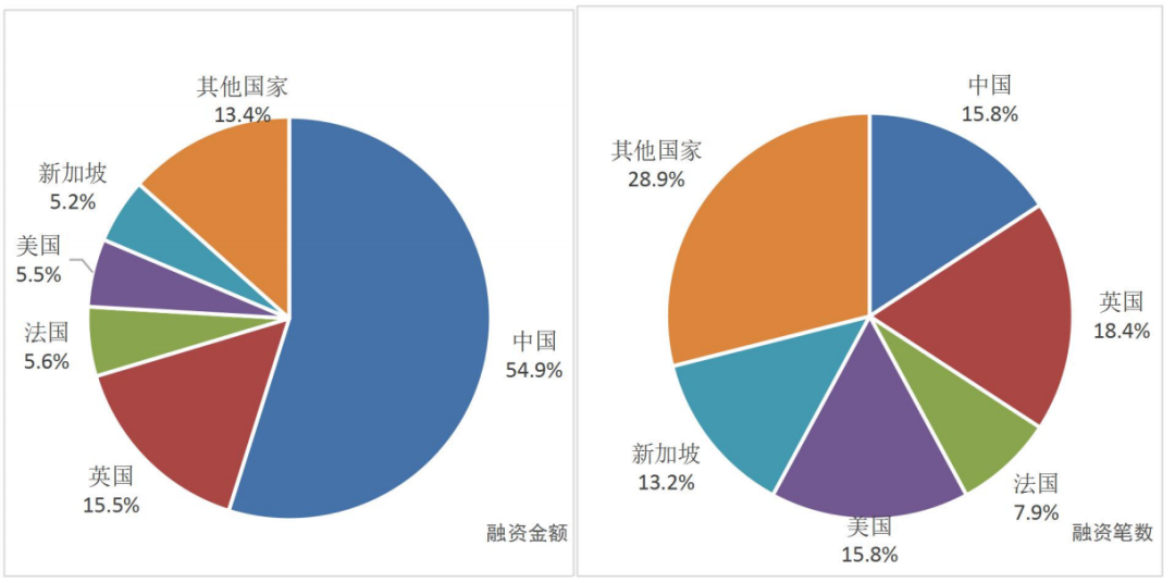 3. 中国融资金额占到全球54.9%,美国仅占5.5%