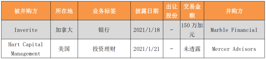 表2:2021/01/18—2021/01/24金融科技公司并购事件