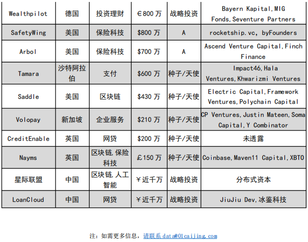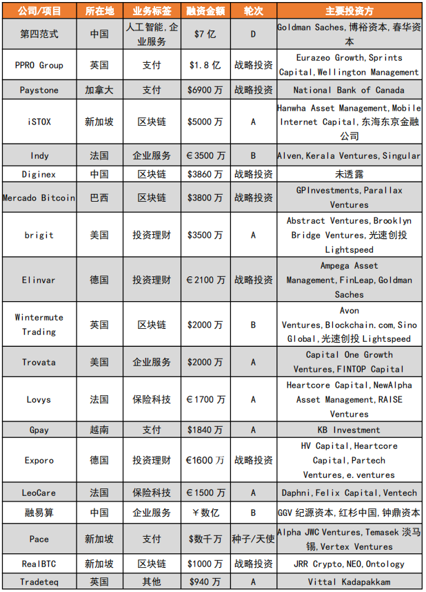 附表:2021/01/18—2021/01/24部分金融科技融资详情